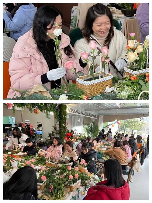下午時分,插花活動正式拉開帷幕。活動現場花香四溢,氣氛熱烈而溫馨。特邀花藝師首先為大家詳細講解了花卉的選擇技巧、插花的基本步驟以及色彩搭配知識。從選花、剪枝到構圖、造型,每一個細節都進行了耐心細致的示范和指導。女同胞們圍坐在一起,認真聆聽花藝師的講解,不時提出自己的疑問和見解。在實際操作環節,大家更是充分發揮自己的創造力和想象力,精心構思每一盆插花的布局和風格。經過一個多小時的努力,原本普通的花材在大家的手中變成了一盆盆獨具匠心的插花作品,每一盆都散發著獨特的韻味和美感。
